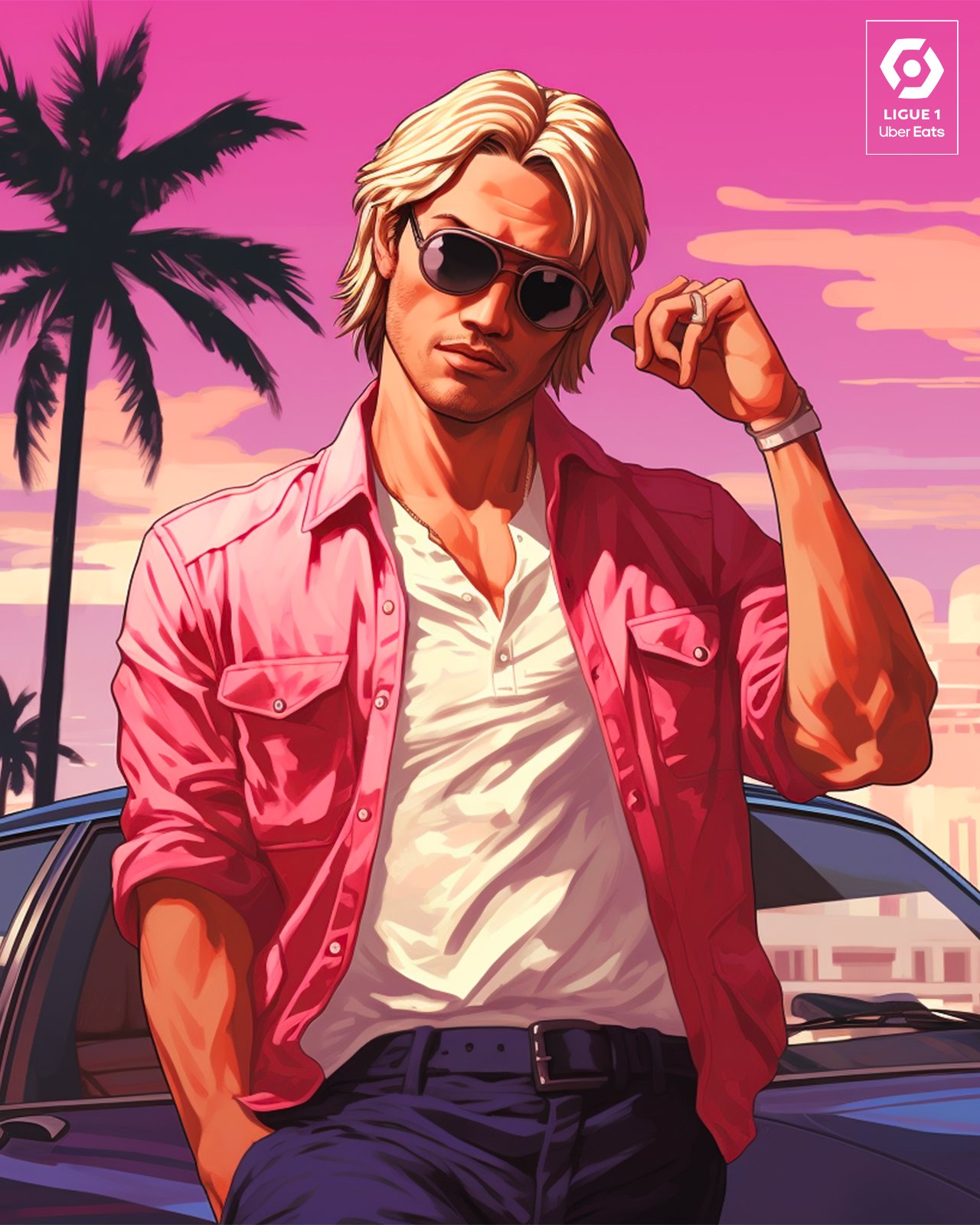 ◆画像◆リーグ・アン公式の伊東純也イラストが浜辺でブイブイ言わせてるイケオジで🌿