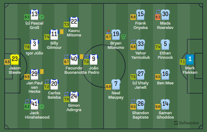 ◆プレミア◆ブレントフォード戦ブライトンFW三笘薫7.3、ドリブル3/7、キーパス3、84タッチ