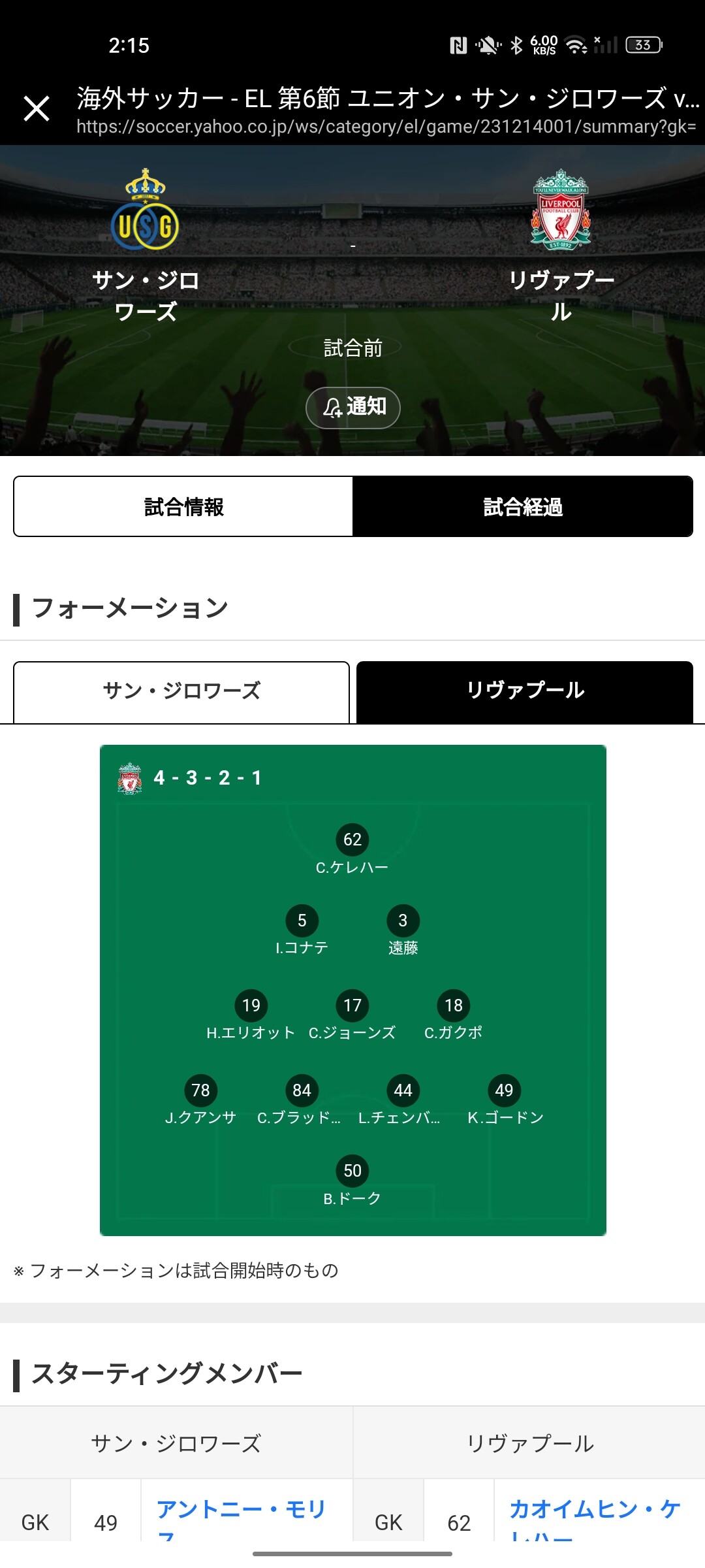 ◆悲報◆スポナビさん、USG戦のリバポのフォメでケレハー(本職GK)をワントップに置いてしまう😭