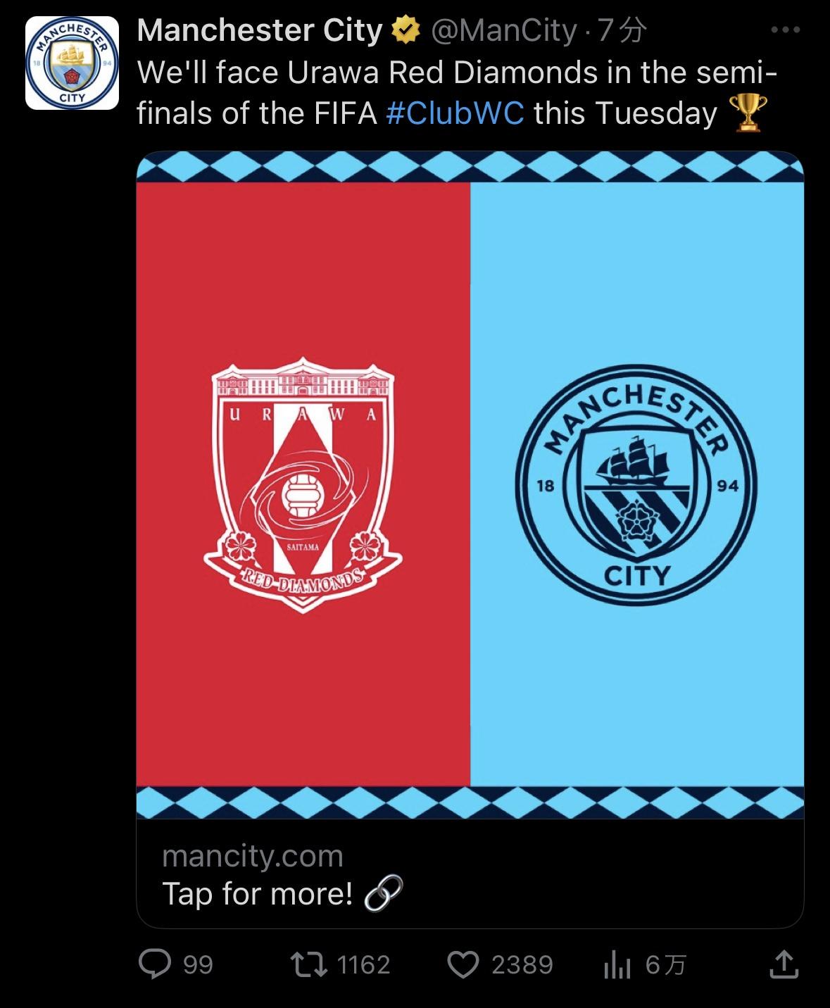 ◆画像◆マン・シティ公式垢に浦和レッズのエンブレム