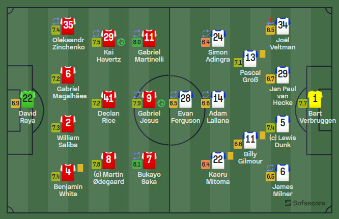 ◆悲報◆アーセナル戦ブライトンFW三笘薫6.4最低点タイ、31タッチ・地上戦2/8・ドリブル0/1・シュート0