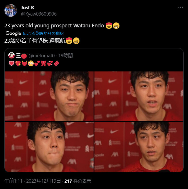 ◆画像◆リバポMF遠藤航、現地で23歳の若手ホームだと思われてる模様🤔