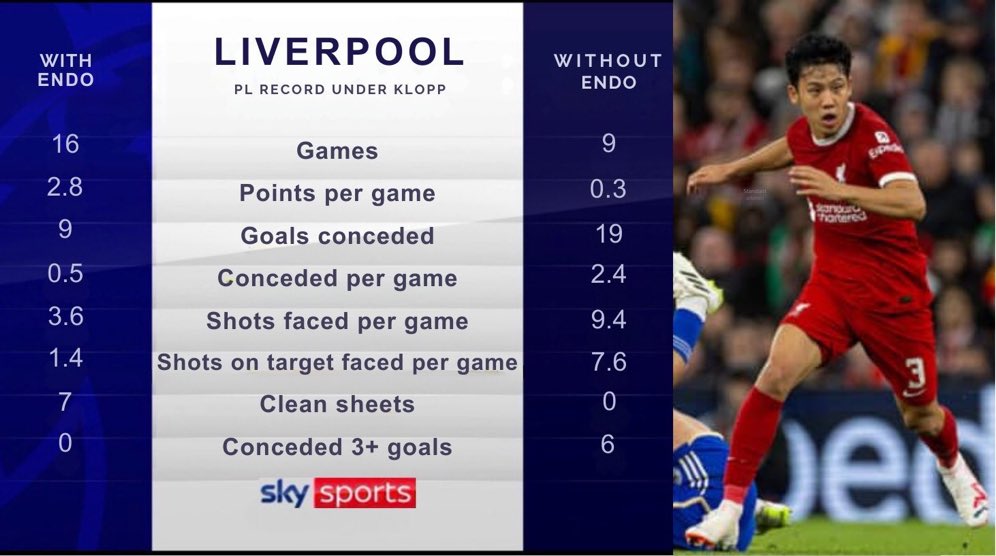 ◆驚愕◆リバポにおける遠藤の影響力が凄すぎ!?遠藤有りなら平均勝ち点2.8、いないと0.3😲