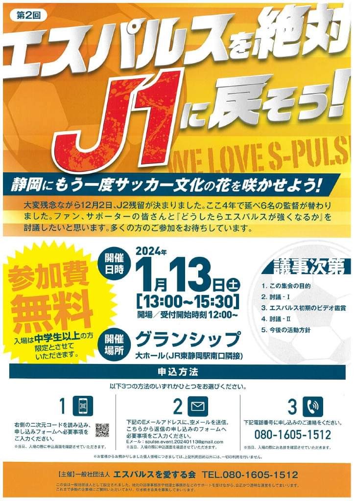 ◆Jリーグ◆エスパルスを愛する会主催「エスパルスを絶対J1に戻そう!」会が興味をそそると話題に!