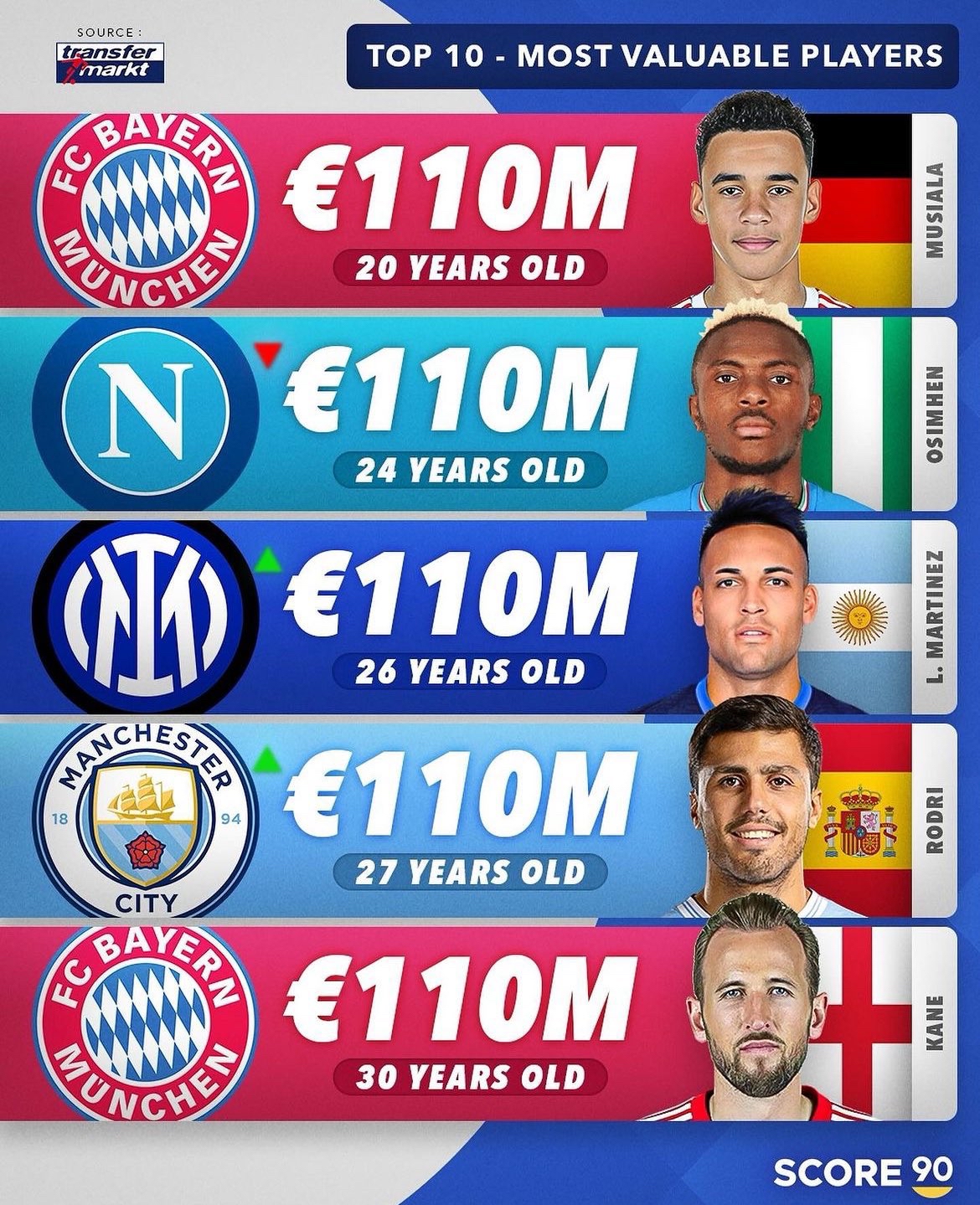 【朗報】サッカーで現在最も価値のある選手トップ10、決まるwwwwwwwwww