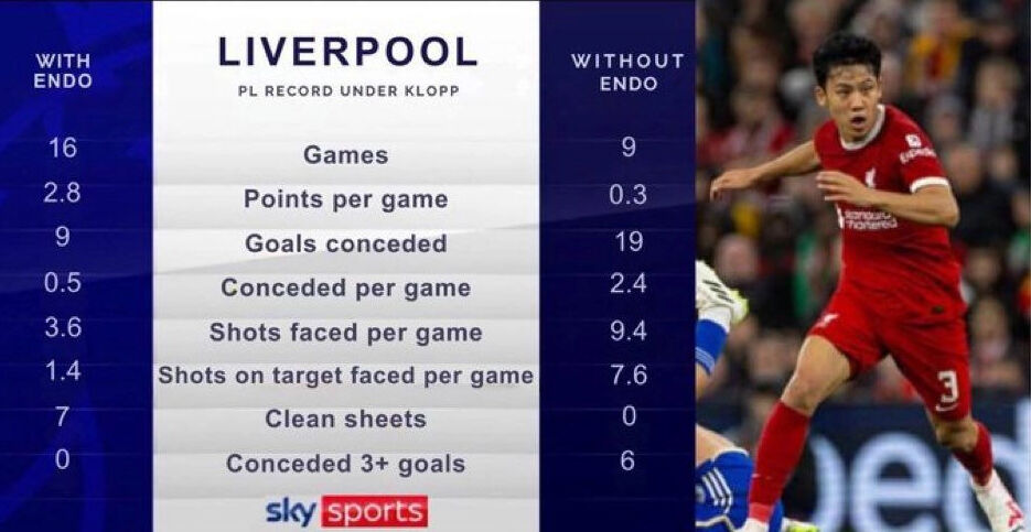 遠藤航あり・なしでのリヴァプール戦績