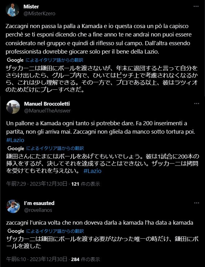 ◆悲報◆鎌田大地がセリエA初ゴールしたときインスタに唯一※くれたザッカーニが最近鎌田にパス出さない