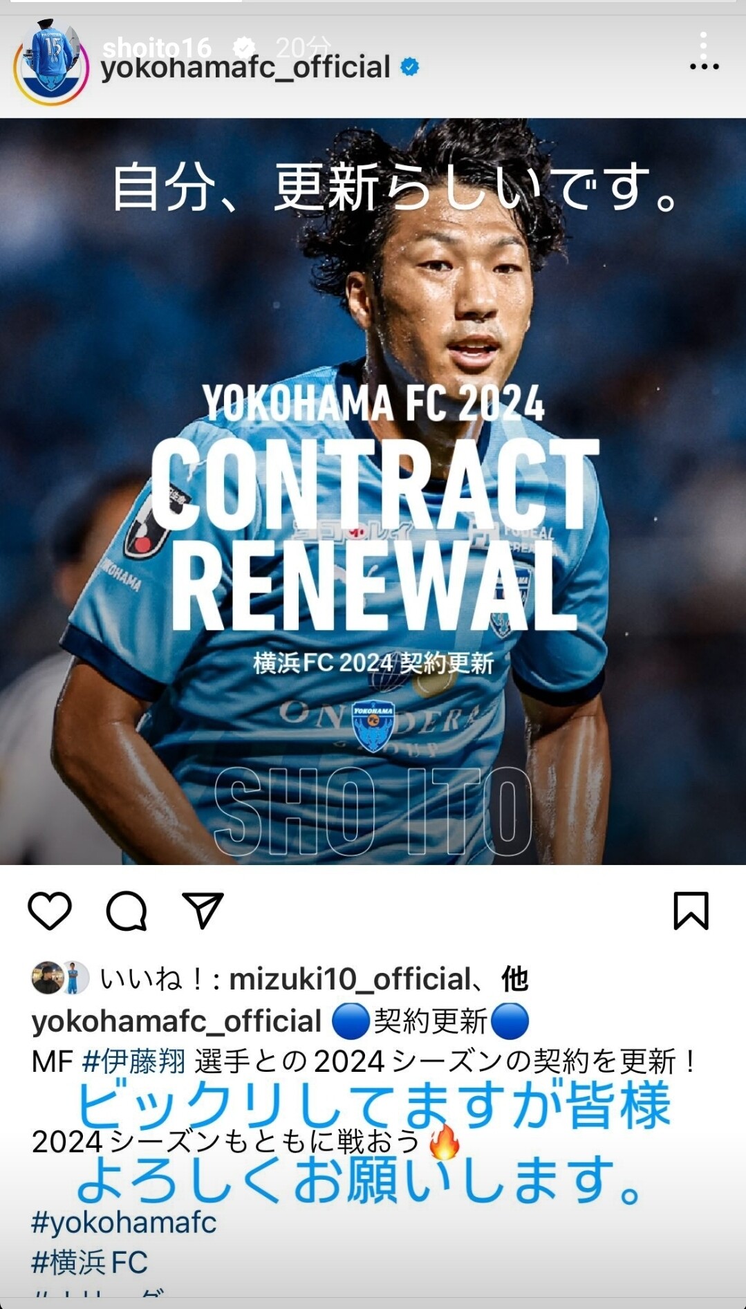 ◆J小ネタ◆横浜FCの伊藤翔さん、自分の契約更新に驚く「ビックリしてますが…」😲