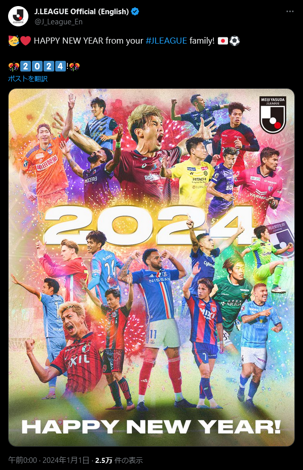 ◆悲報◆Jリーグ公式さん、年始の挨拶にJ1各クラブの選手を描いた画像をポストも盟主福岡の選手なし😭