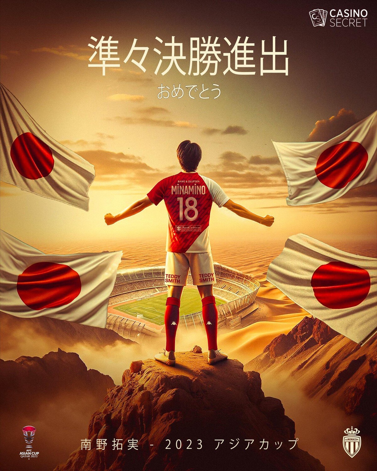 ◆画像◆モナコ公式のR8進出おめでとう画像の南野タキが完全に砂漠の王で🌿