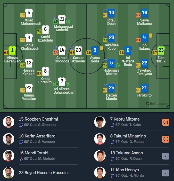 ◆アジア杯◆R8イラン戦最高点守田7.7、次点久保7.1、最低点板倉と三笘で6.1