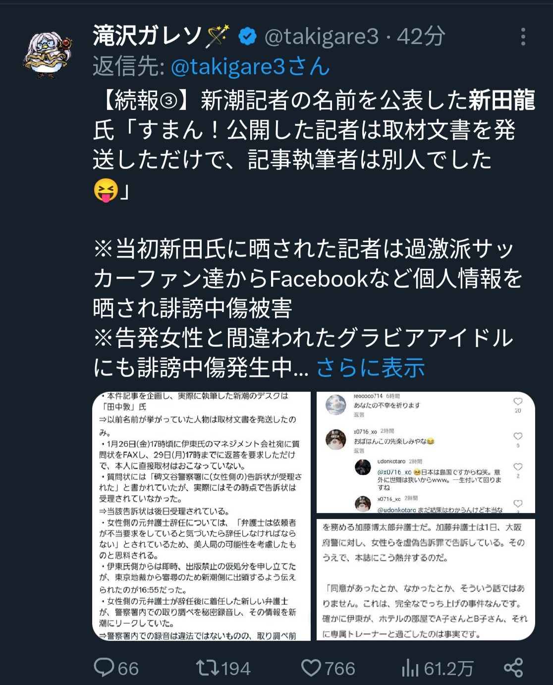 ◆悲報◆IJの記事を書いたと暴露された記者、訴えた女性とされたグラドルいずれも別人😲