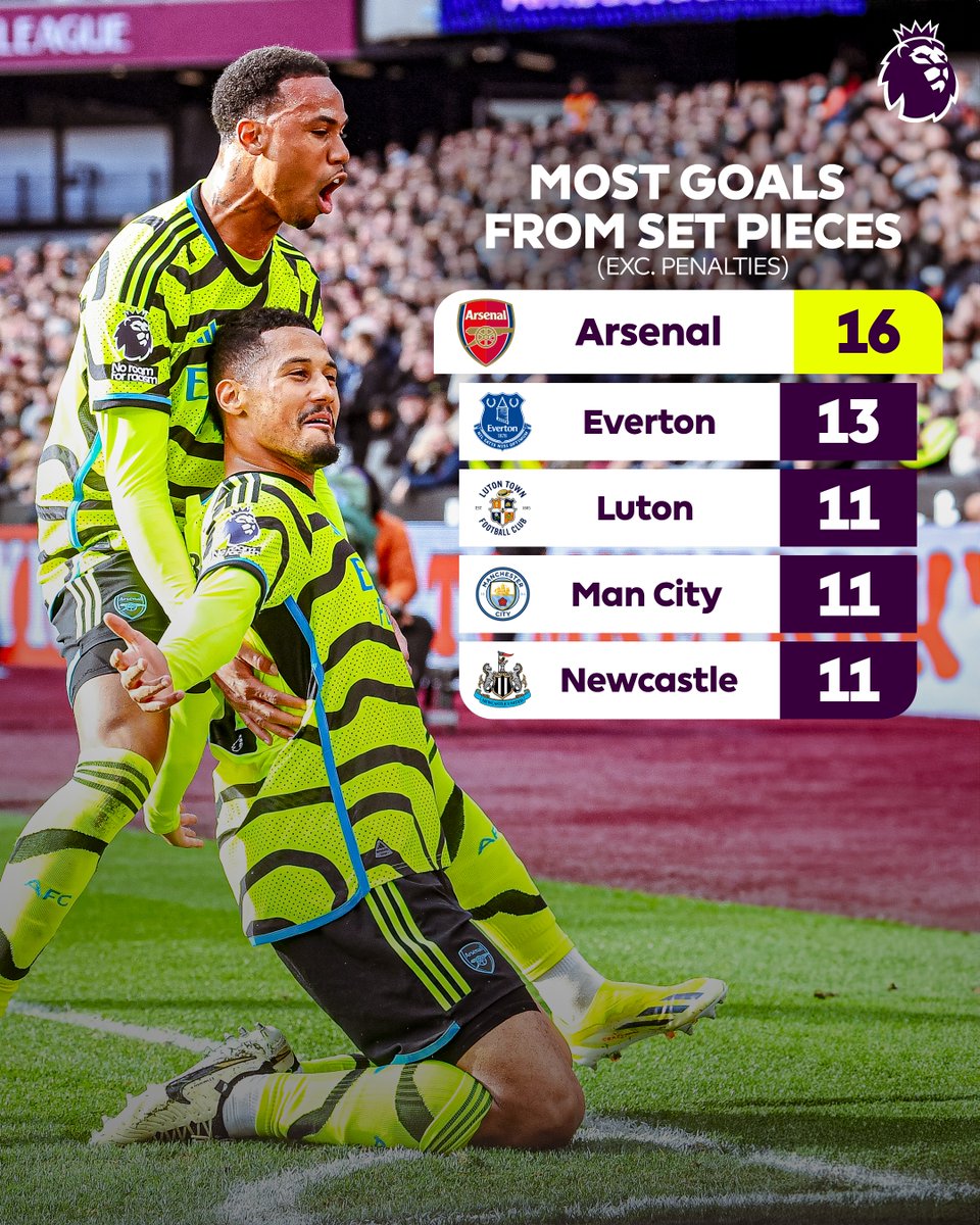 ◆朗報◆アーセナル、セットプレーからの得点ウェスト・ハム戦で3点一気に追加して16点でプレミアNO1
