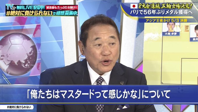 ◆悲報◆サッカー解説者松木安太郎氏、U23イラクの危険なシュートに思わず『やですよ!』😭