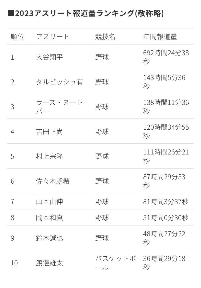 ◆悲報◆日本のTV局アスリート報道量ランキングほぼ野球選手のみ!報道の公平性無視の傲慢なランキングで🌿