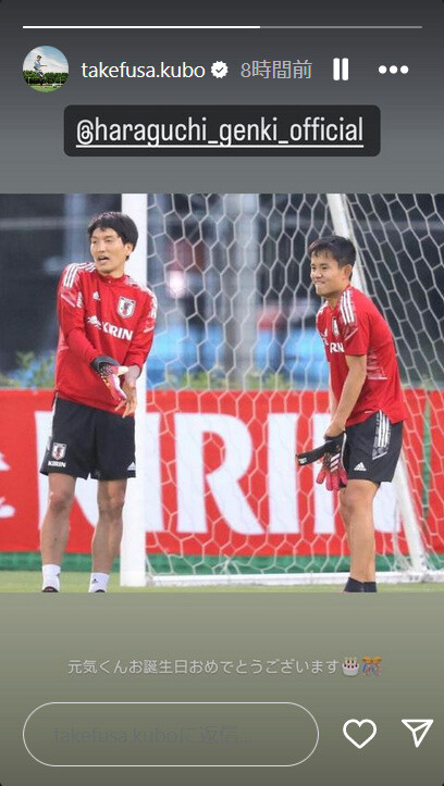 ◆画像◆ソシエダFW久保建英、代表の原口元気先輩にお誕生祝😁