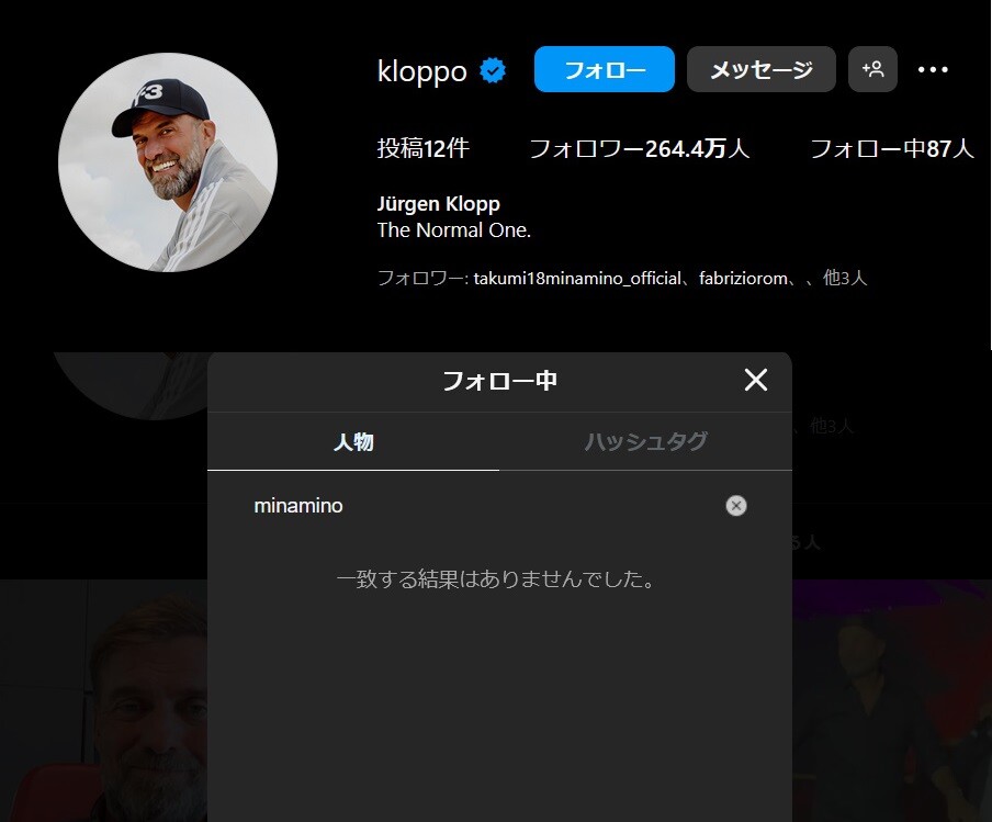 ◆悲報◆南野タキ、クロップが新設したインスタ垢をフォローもいまだフォロバなし😭