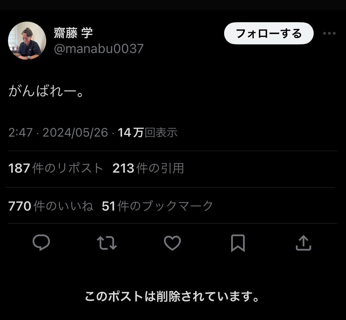 ◆悲報◆エヒメッシ齋藤学さん「がんばれー」と呟いただけなのに大炎上⇒投稿削除😭