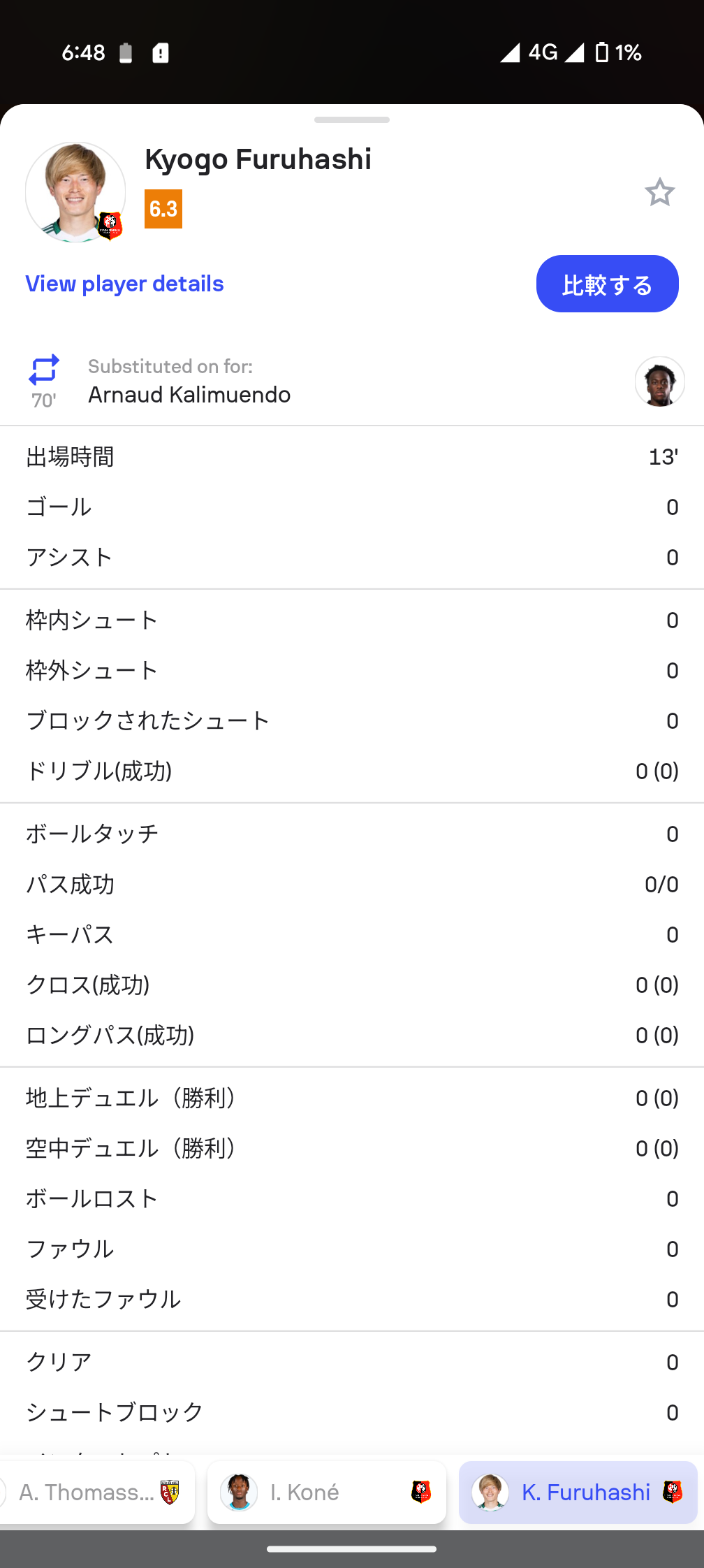 ◆悲報◆レンヌFW古橋亨梧、RCランス戦20分出場もボールタッチ4、パス3本全て失敗