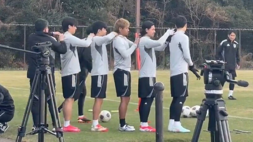 ◆画像◆練習前、日本代表の面々中村・久保・守田・南野・鎌田でトレインになってしまう