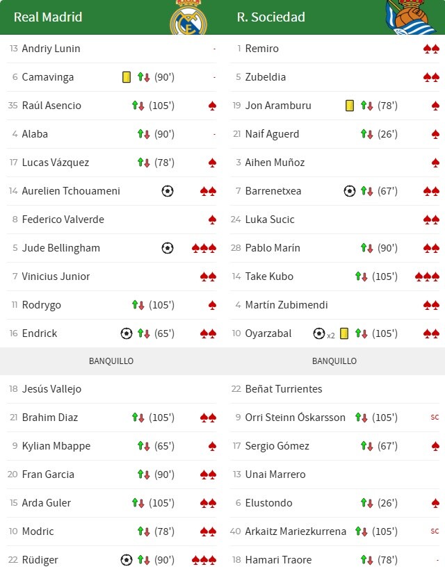 ◆国王杯◆準決勝マドリー戦ソシエダFW久保建英、as採点⭐️3つでチーム単独最高点、マドリーはベリンガムとリュディガーが⭐️3つ