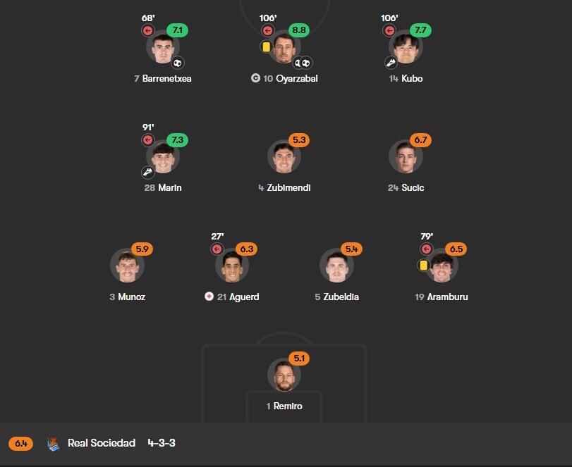 ◆国王杯◆準決勝マドリー戦ソシエダFW久保建英7.7でチーム2番目!