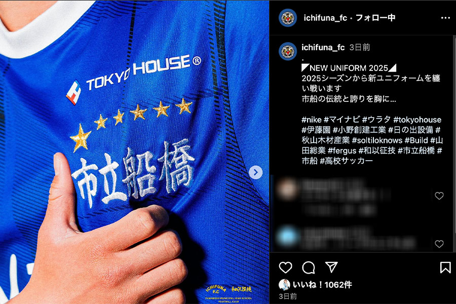 市立船橋はサッカー強豪校として数多くのJリーガーを輩出しており、全国高校サッカー選手権でも優勝歴を持つ。そんな市立船橋は29日に公式Xとインスタグラムで「2025シーズンから新ユニフォームを纏い戦います 市船の伝統と誇りを胸に」と綴り、新ユニフォームを発表した。