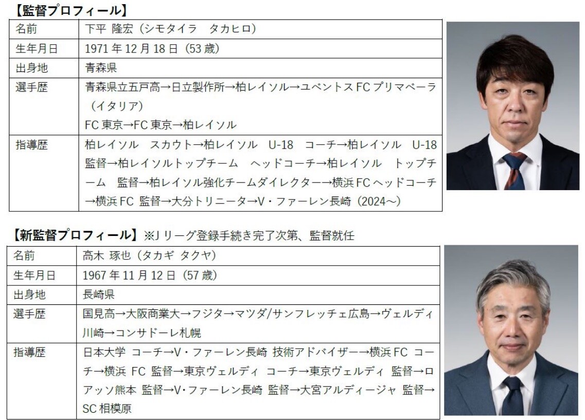 なお、新監督につきましては、6月20日(金)のJリーグへの登録手続きが完了次第、高木 琢也代表取締役 兼 C.R.Oが就任いたします。