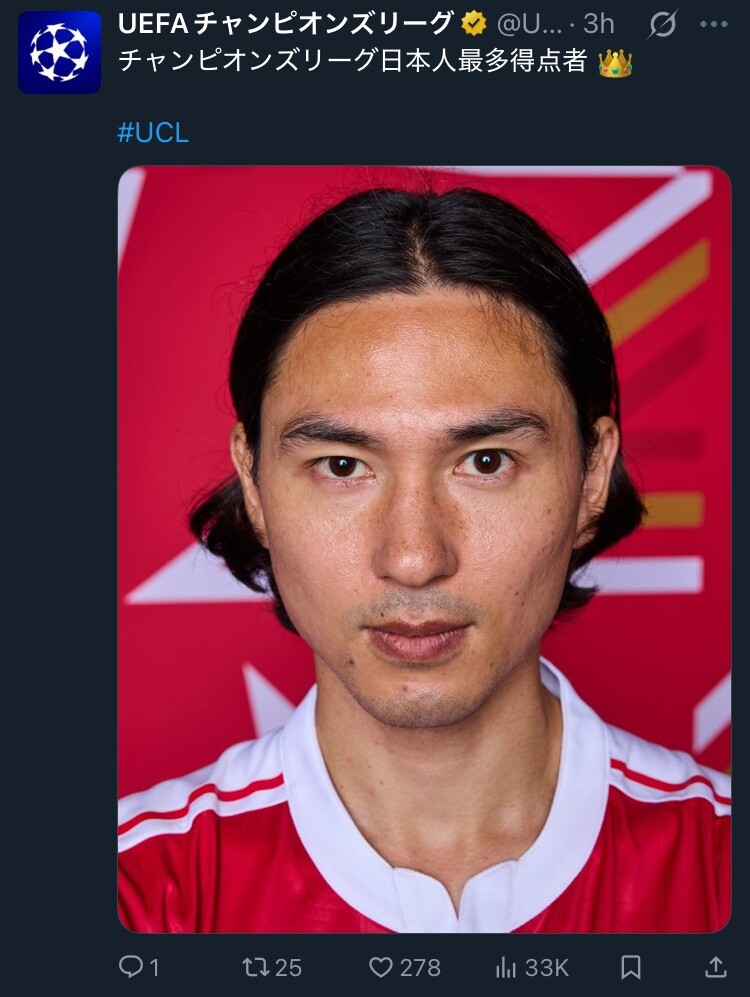 ◆朗報◆UEFA公式に「チャンピオンズリーグ日本最多得点者👑」降臨🤔