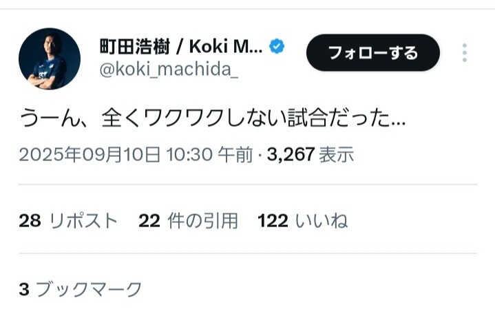 ◆悲報◆負傷中の日本代表DF町田浩樹さんSNSで「うーん、全くワクワクしない試合だった…」と危ない投稿をしてしまう😭
