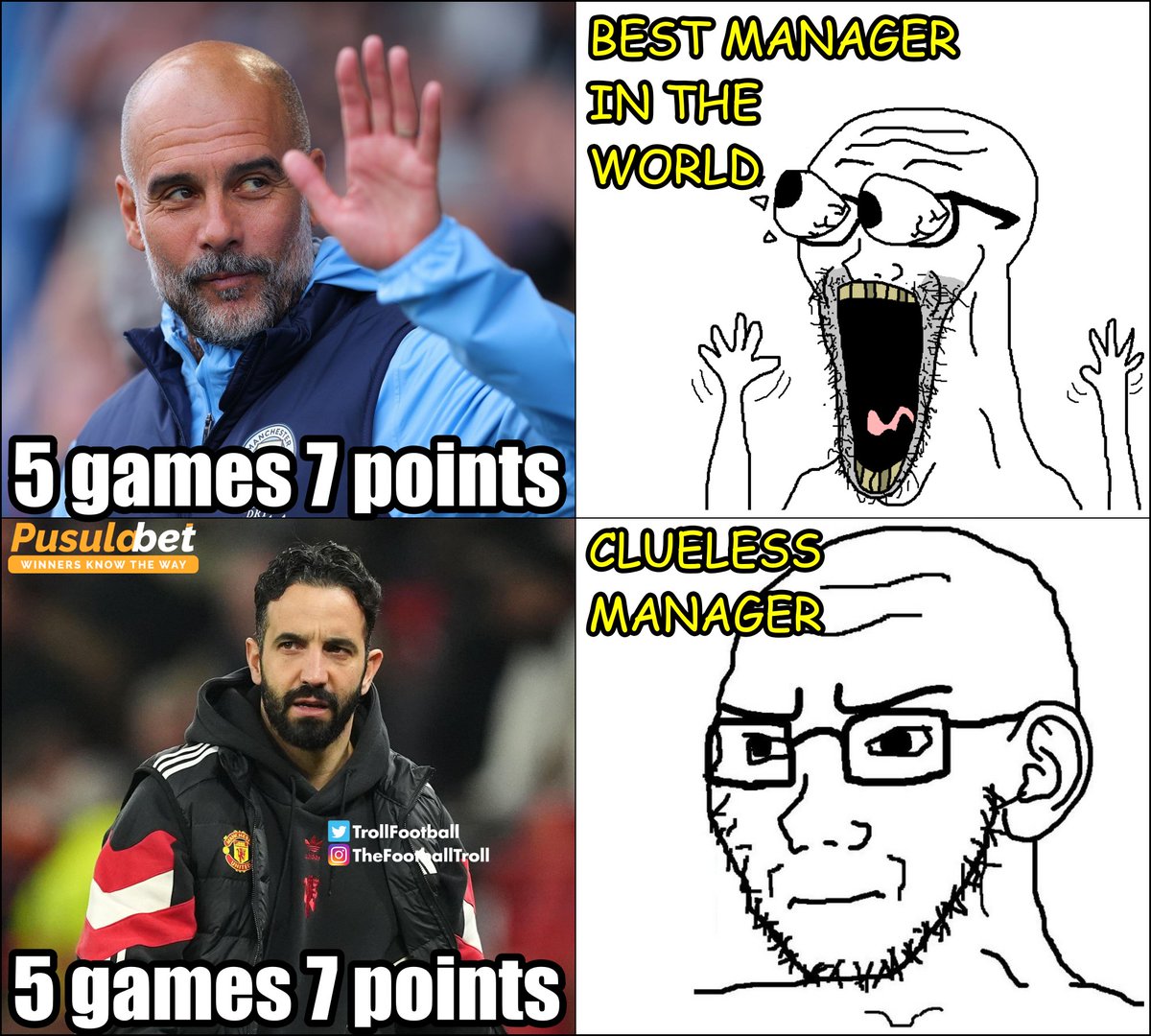 ◆悲報◆世界最高監督ペップ5試合勝ち点7、WW2後マンU史上最低の監督アモリム5試合勝ち点7🤔