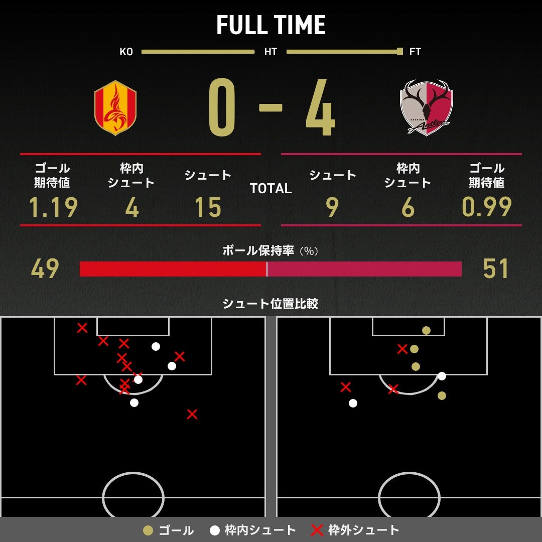 ◆悲報◆名古屋グランパス、シュート数鹿島の倍、xGも上回ったのにホーム観客3万4千人を前に0-4で爆死😭