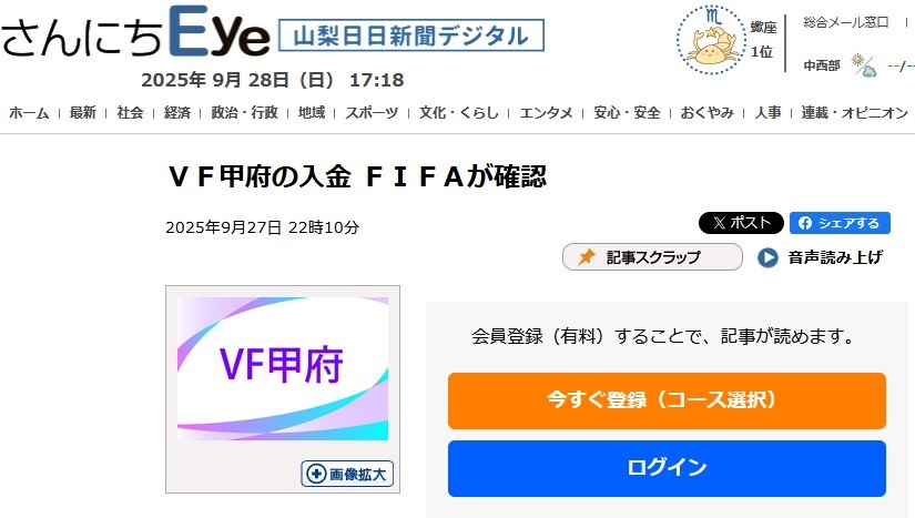 ◆朗報◆ヴァンフォーレ甲府の入金 FIFAが確認!🤔