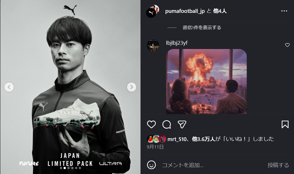 ◆悲報◆ブライトンに日本兵画像UPされた三笘薫のインスタに中国人がきのこ雲画像大量投下!