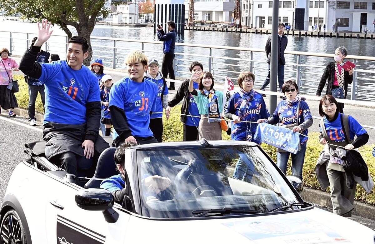 6日は、長崎市、諫早市、佐世保市でパレードや報告会を開催。長崎市で行われたパレードでは、出島メッセからピーススタジアムまでの約700メートルを選手らがバスやオープンカーに乗って移動し、沿道に集まった約5000人のサポーターに笑顔で手を振った。