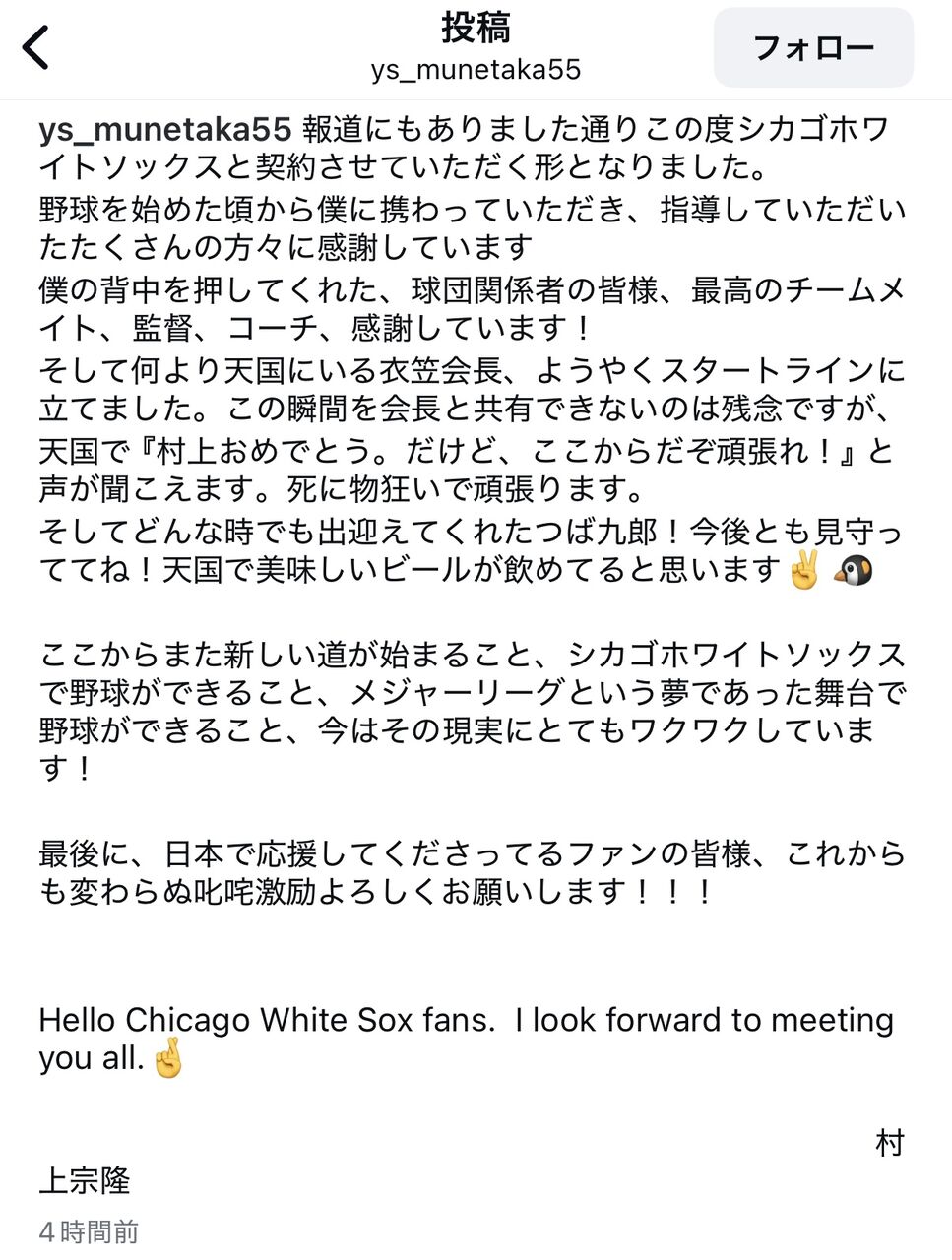 【速報】村上宗隆がホワイトソックスへ電撃加入!2年52億で契約合意wwwwww