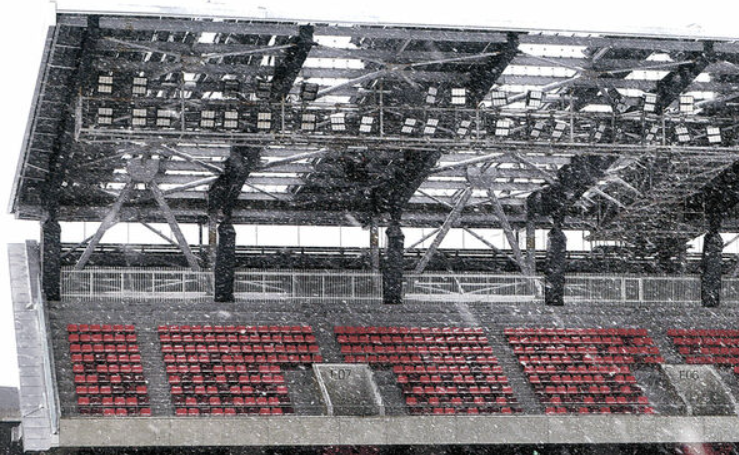 ゴースタ屋根吹き飛ぶ バックスタンドの3割 金沢で最大瞬間28・4メートル