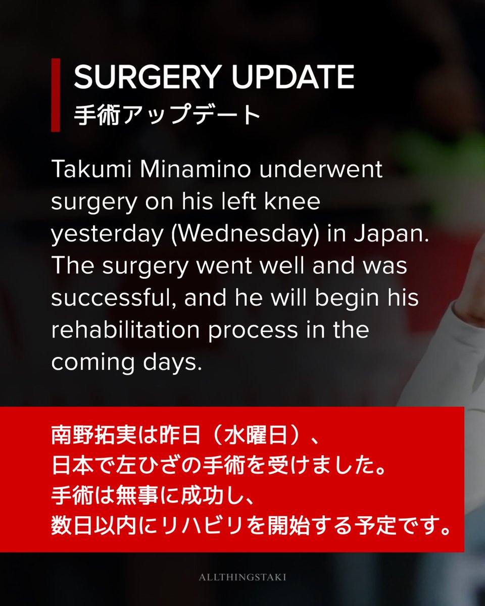 ◆朗報◆モナコMF南野拓実、膝の手術成功!