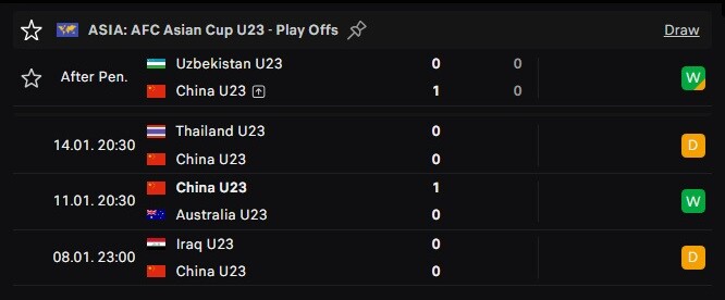 ◆U23珍◆U23中国代表さん、大会通じてたった1ゴールでベスト4に勝ち上がってしまう😂