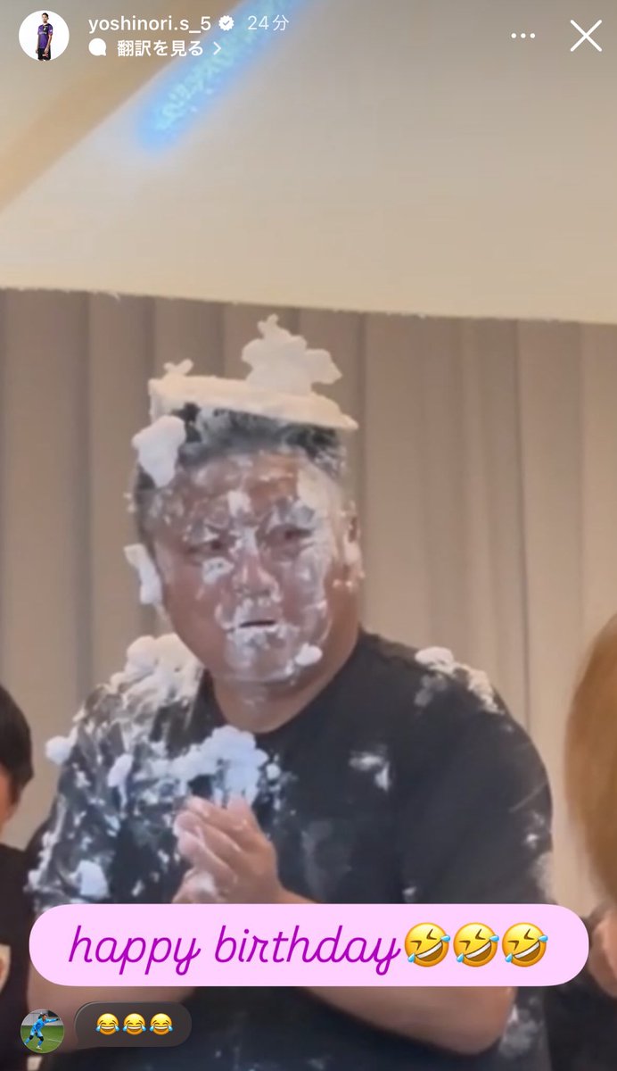 ◆無礼講◆誕生日ケーキを顔面に食らった京都チョウ・キジェ監督の目つきがガチだと話題に!