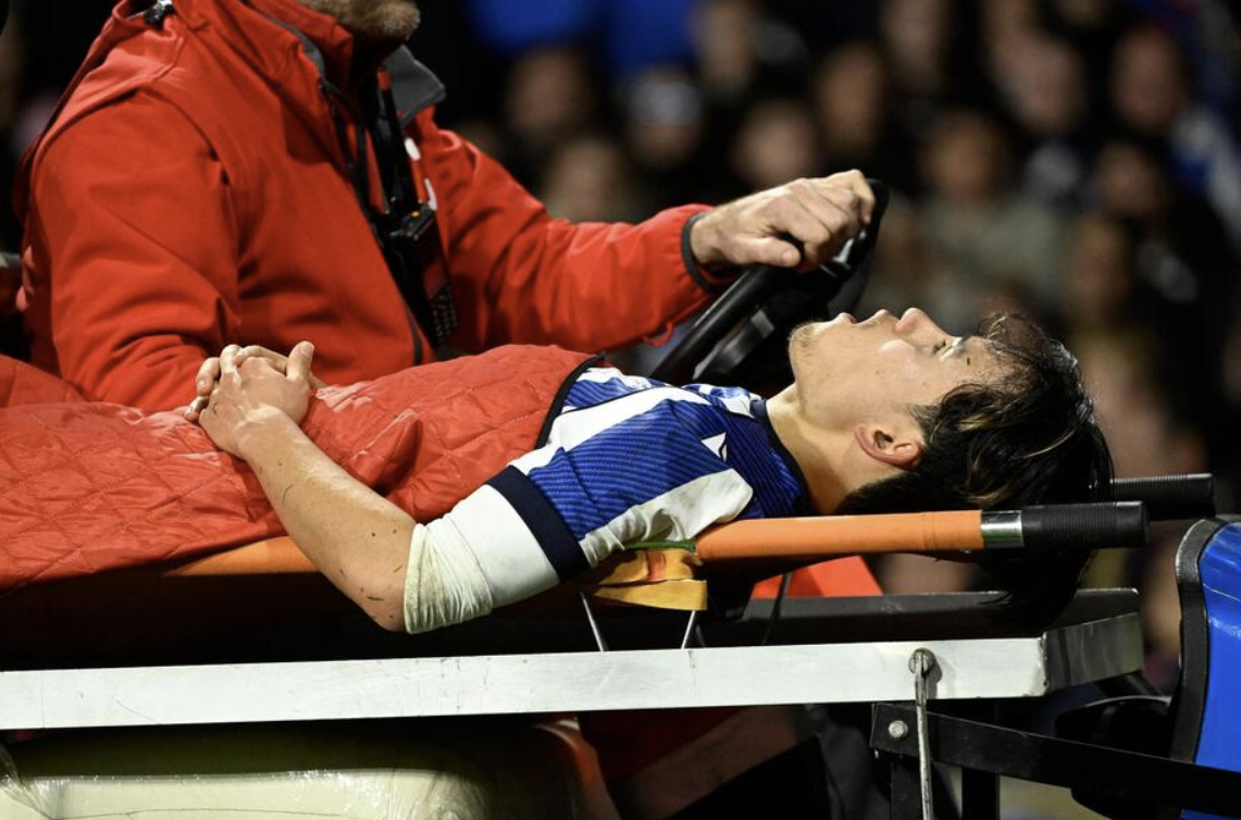 【動画】久保建英が負傷、右太もも裏を抑えて倒れ込み微動だにせず…担架で運ばれる。ソシエダはバルセロナに2-1勝利