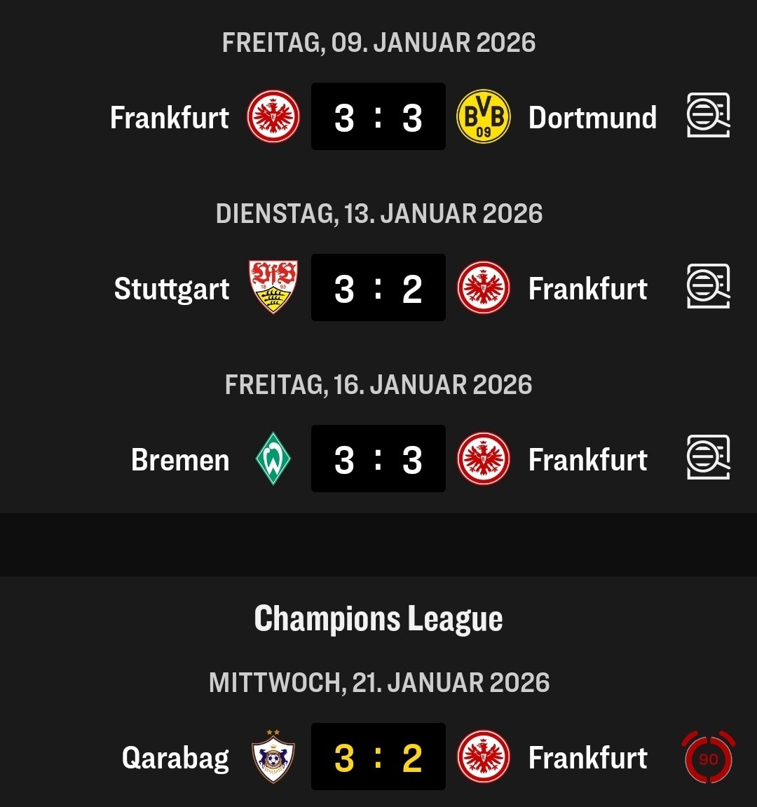◆悲報◆フランクフルト、カラバフに3失点で公式戦4試合連続3失点!CLの平均失点も2.71でほぼ3…ガバガバ