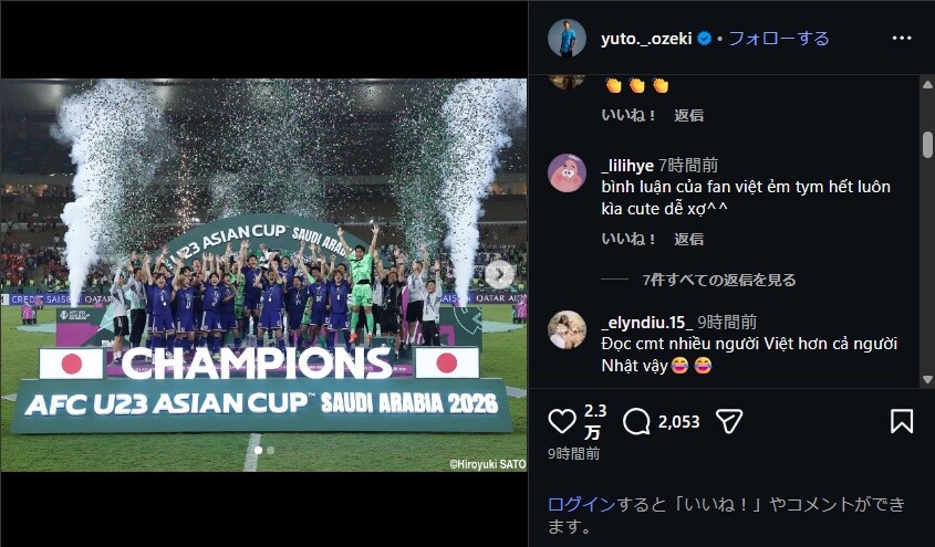 ◆U23代表◆大関友翔、ベトナム・中国などで人気急上昇?インスタ※欄にコメント殺到!