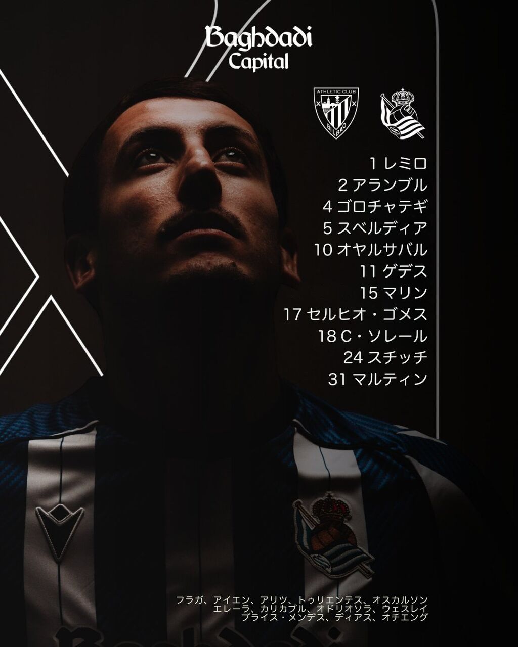 【速報】レアルソシエダ対ビルバオ、バスクダービーのスタメンがこちら