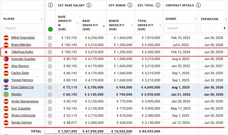 ◆リーガ◆ソシエダ所属選手の年俸判明!?久保建英、チーム2位の€5.21m