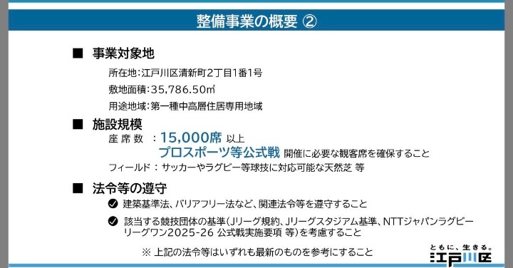 ◆朗報◆江戸川区清新町に1.5万人以上クラスのプロスポーツ向け球技場建設決定!