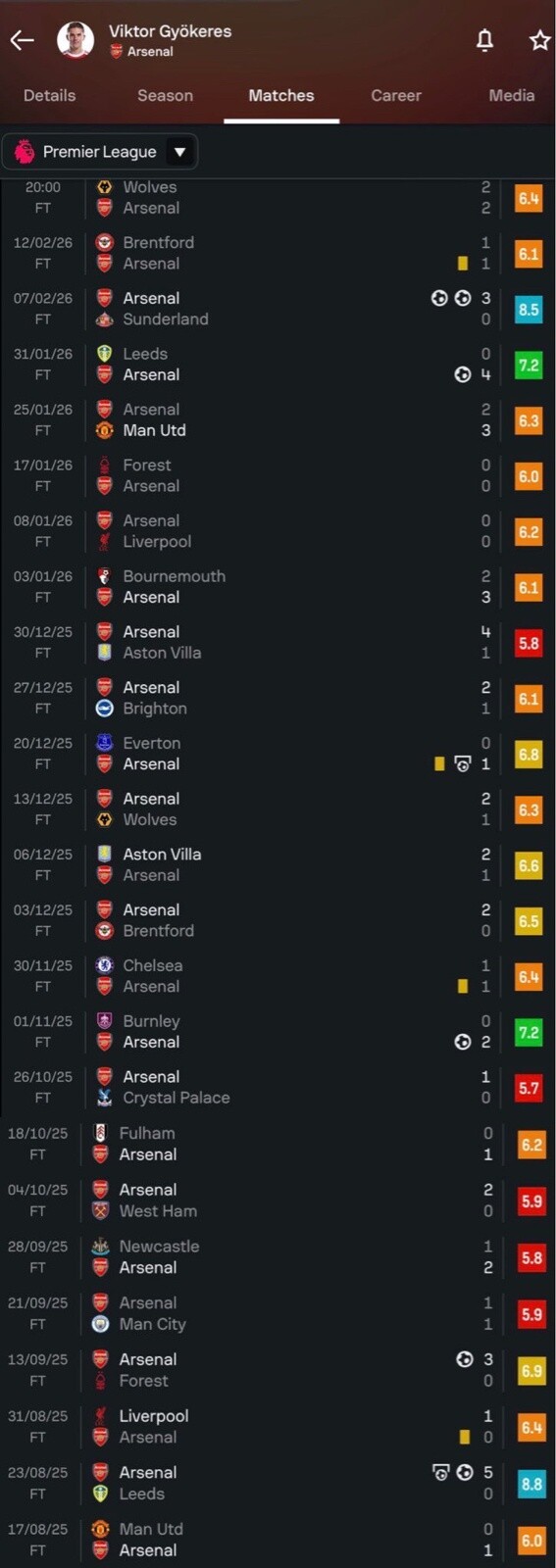 ◆悲報◆アーセナルFWギョケレシュさんが得点するのは7試合に1回!