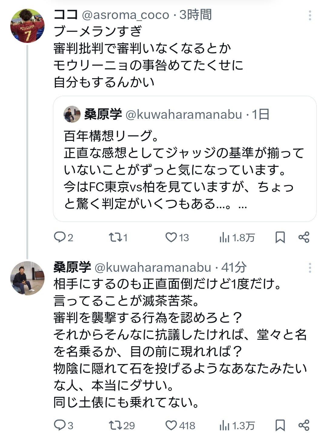 ◆悲報◆DAZN実況桑原学氏、素人にうざ絡みされてブチギレ!「堂々と名乗れば?…ダサい」
