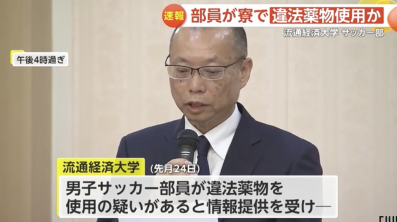 学は無期限活動休止と監督の職務停止を決定。名門サッカー部の不祥事に衝撃が広がり、「薬物流通大学