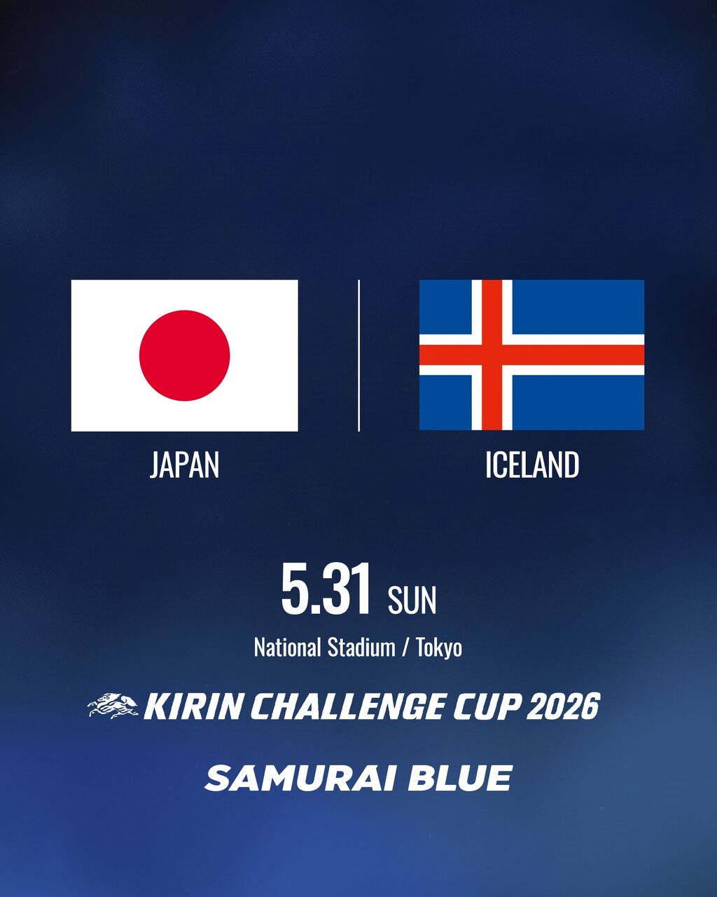 日本サッカー協会(JFA)は3月18日、5月31日に国立競技場で開催される「キリンチャレンジカップ 2026」において、日本代表がアイスランド代表と対戦することが決定したと発表した。